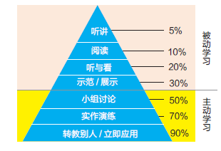空间环境对人的心理情绪和行为模式产生的影响是潜移默化且持续发生的。美国国家训练实验室研究成果表明不同的学习方式、学习者获得的学习效果完全不同,这就是著名的“学习金字塔”(图3)。