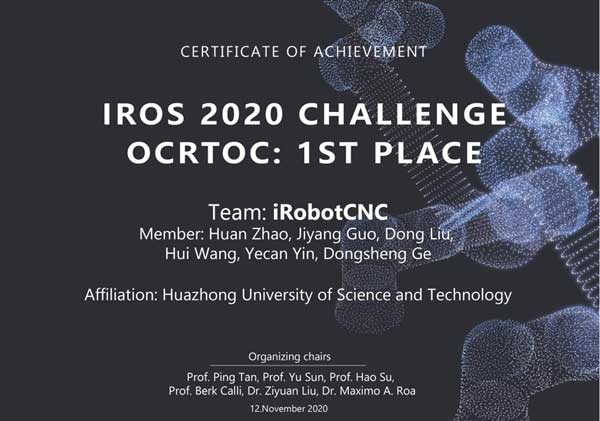 之所以能在短期内受到如此多关注,是由于该团队在一项全球比赛中获得了冠军。8月15日至11月12日,“IROS 2020云机器人桌面整理挑战赛(IROS 2020:Open Cloud Robot Table Organization Challenge)”在线上举行,由华中大数字制造装备与技术国家重点实验室丁汉院士、赵欢教授指导的iRobotCNC团队,与全球59支高水平队伍经过3个月激烈角逐,夺得全球冠军。