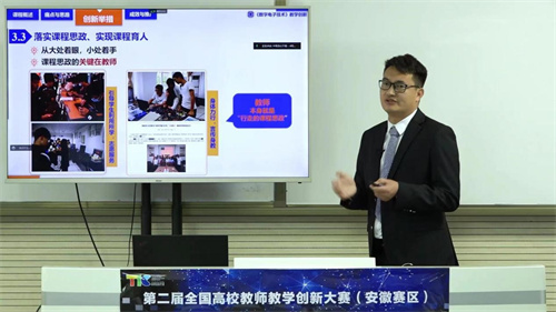 第二届全国高校教师教学创新大赛安徽省决赛由安徽省教育厅主办,安徽农业大学承办。本届安徽省赛通过校级遴选,共计45所高校的292组参赛选手晋级省赛。通过网络评审,汪文明晋级省级决赛,并就自己的参赛课程分别从教学实践、教学创新设计、教学创新成果等方面进行了精彩的汇报。