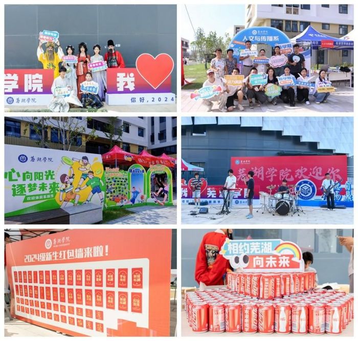 除了细致周到的服务外,学校还精心策划了一系列迎新活动。高挂的横幅、醒目的标语、飘扬的彩旗、多彩的美陈,以及各具特色的新生校园打卡点等,表达出了学校对新生们的欢迎与祝福。由全体新生姓名拼成的“芜湖学院欢迎你”新生姓名墙、“你好,新同学”3D立体打卡墙等,更是吸引了众多新生和家长打卡留念。此外,校团委还推出了一系列新生福利活动,快乐大转盘、抽红包、投壶游戏、手工漆画扇以及快闪表演等。开学当天过生日的七位同学,更是幸福地获得了学校师生送上的祝福和生日蛋糕。