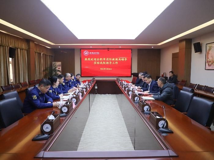 12月26日,合肥市消防救援局支队长王劲峰在新站区消防救援大队的陪同下,到合肥经济学院调研指导消防安全教育工作。校党委书记、督导专员孙建成,党委副书记、副校长吴国兵,副校长伍德勤,以及学生处、安管处等相关部门负责同志参加座谈。会议由孙建成书记主持。