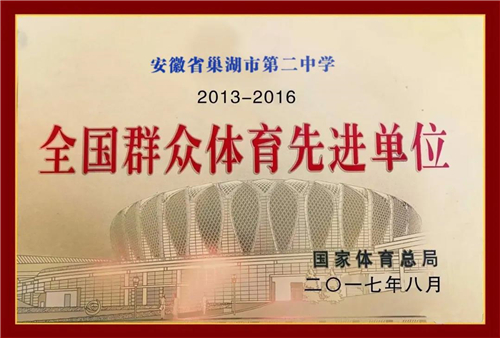 巢湖二中还先后获得“全国群众体育先进单位”、“全国《体育工作条例》先进学校”、“安徽省全民健身先进单位”等荣誉称号,2020年被金博宝最新官方网站查询网址