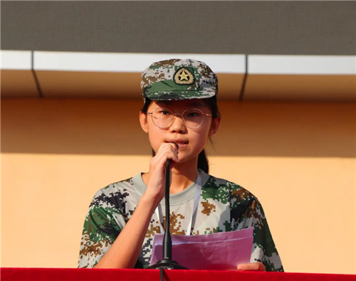 高一(11)班李佳丽同学代表广大新同学表达了对军训的渴望,以及战胜困难、圆满完成军训任务的决心。