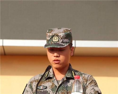 教官代表在仪式上郑重承诺:发扬刻苦拼搏的精神,以身作则,严格要求,高质量、高标准完成军训的各项任务。