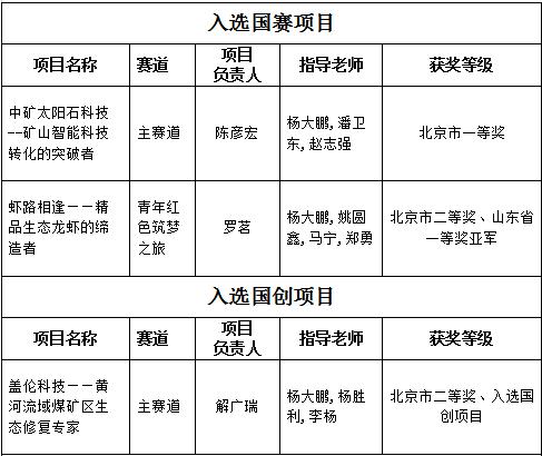 在北京赛区冠亚军排位争夺赛中,中国矿业大学(北京)一项参赛作品脱颖而出,夺得参加国赛的门票,这是中国矿业大学(北京)自此项赛事创办六届以来首次以第一单位晋级全国总决赛,该作品是以转化先进采矿技术、推动能源科技为使命的“中矿太阳石科技-矿山智能科技转化的突破者”项目。另一项依托彭苏萍院士团队科研成果的“盖伦科技-雷达探地与数据分析领军企业”被遴选为国创项目,进行重点培育,继续为冲击国赛大奖做准备。同时,中国矿业大学(北京)与曲阜师范大学联合申报的“虾路相逢-精品生态龙虾的缔造者”项目夺得山东赛区亚军,也顺利晋级全国总决赛。