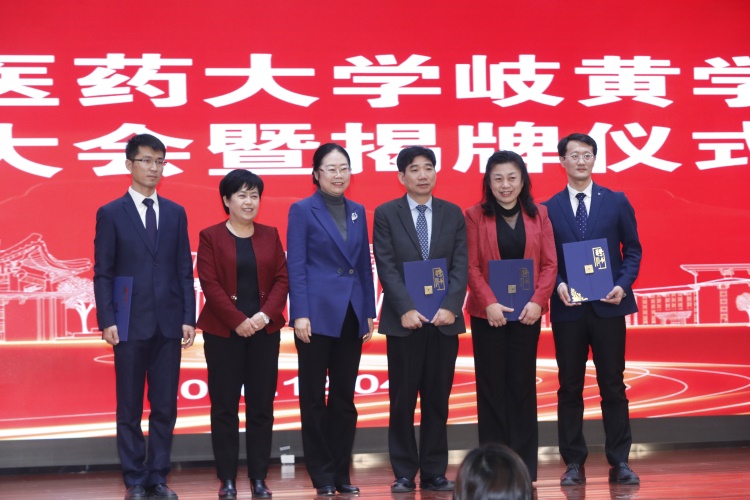会上举行了岐黄学院揭牌仪式。谷晓红书记宣布校党委成立北京中医药大学岐黄学院的决定及院领导任命并为岐黄学院领导颁发聘书。