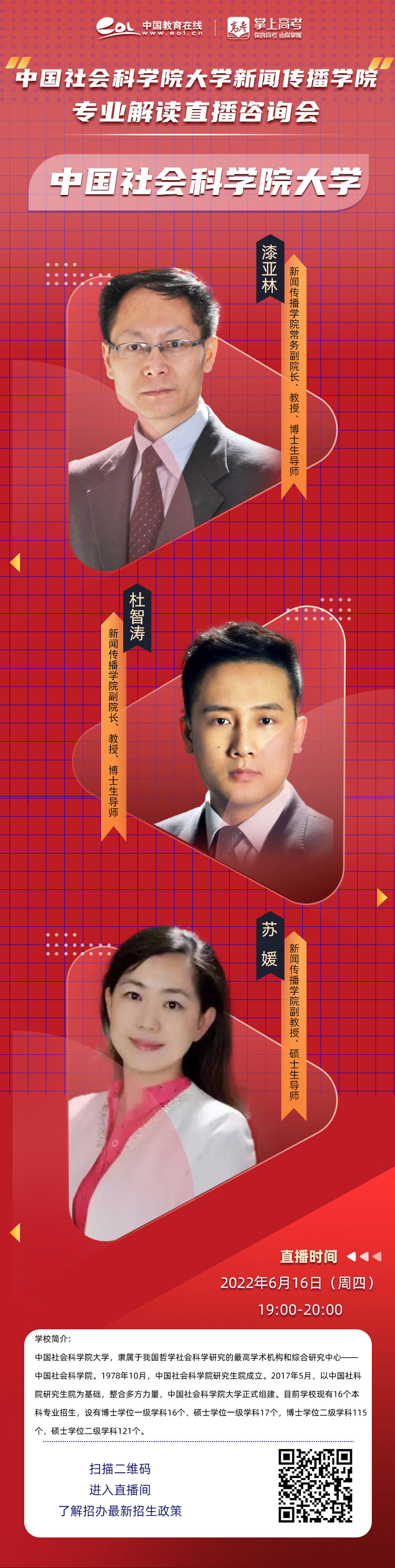 中国社会科学院大学新闻传播学院专业解读直播咨询会,6月16日19:00与您相约云端!