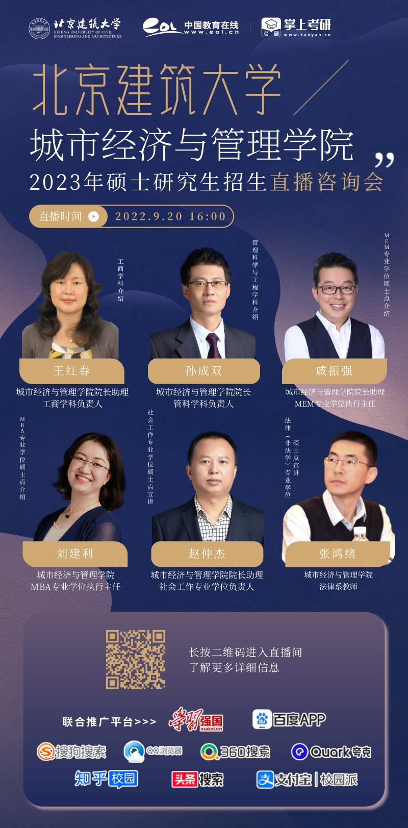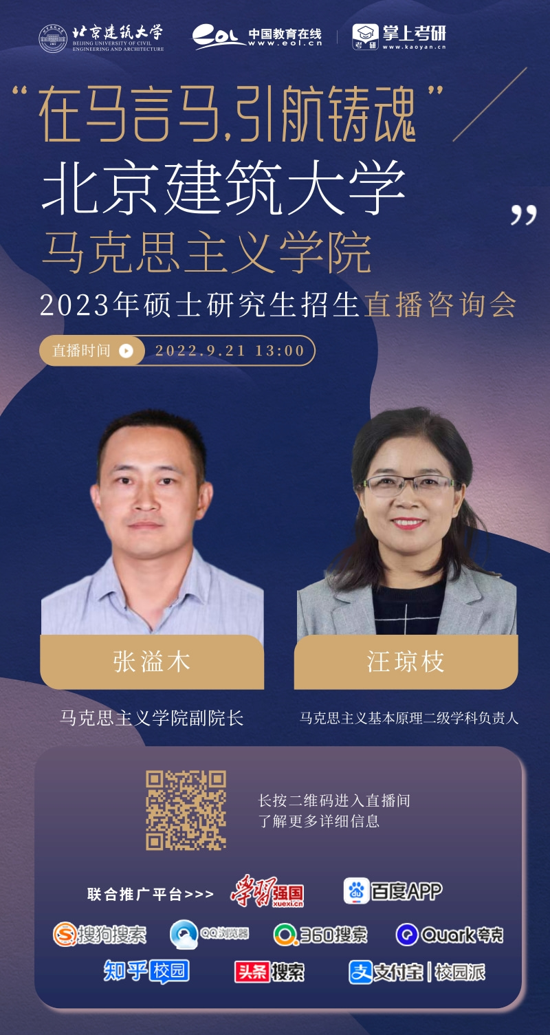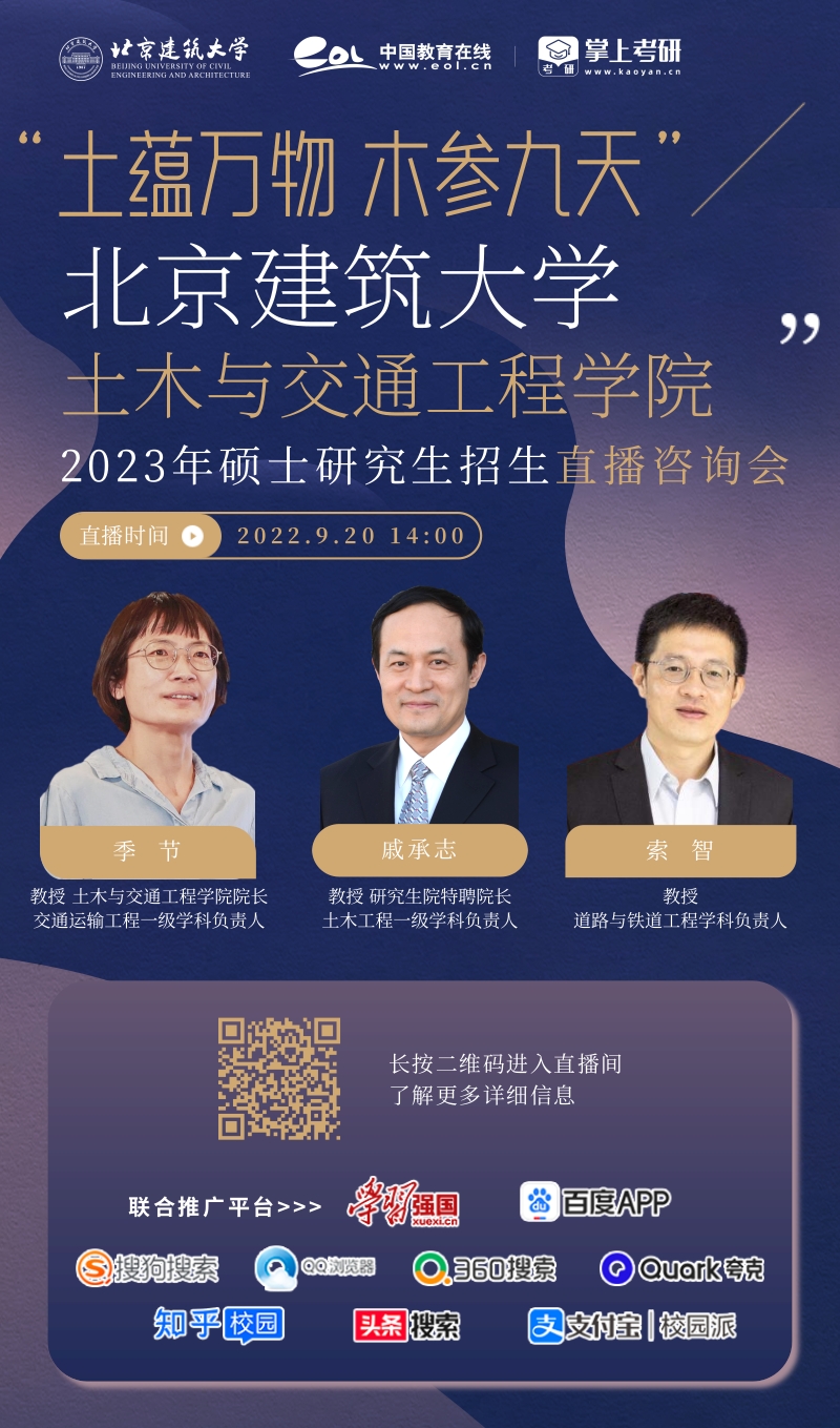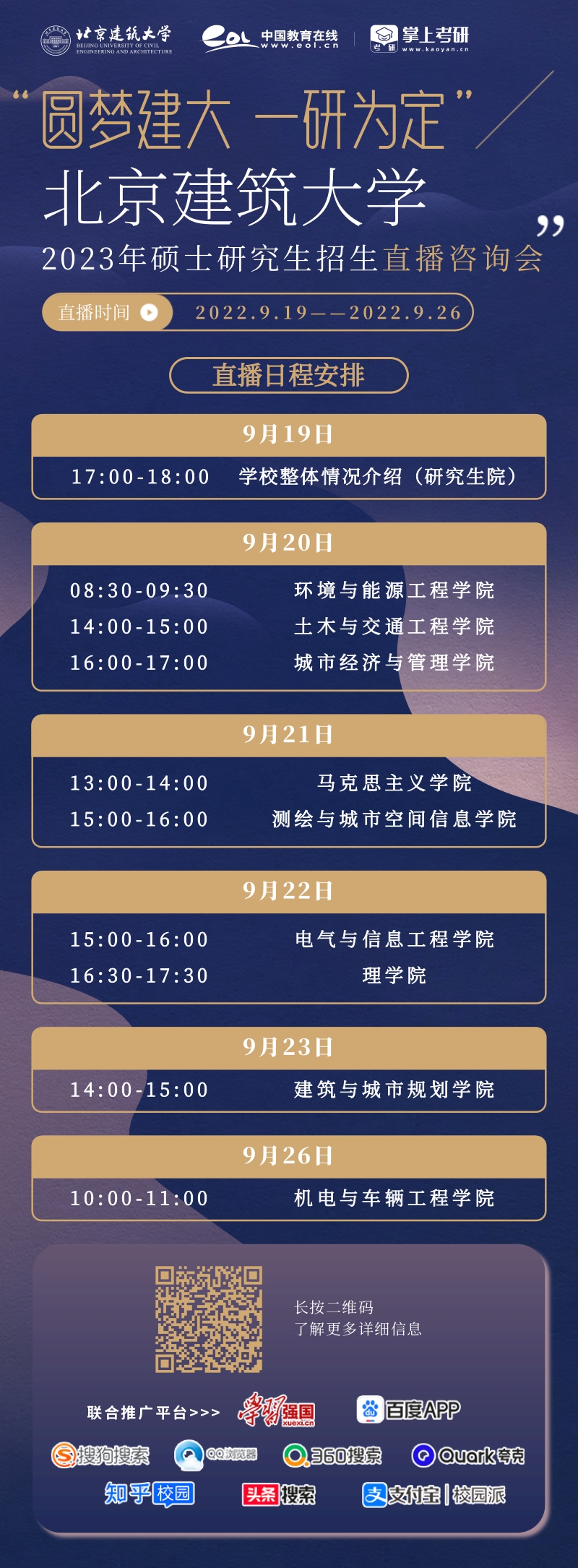 “圆梦建大 一研为定”——北京建筑大学2023年硕士研究生招生直播咨询会9月19日与您相约云端!