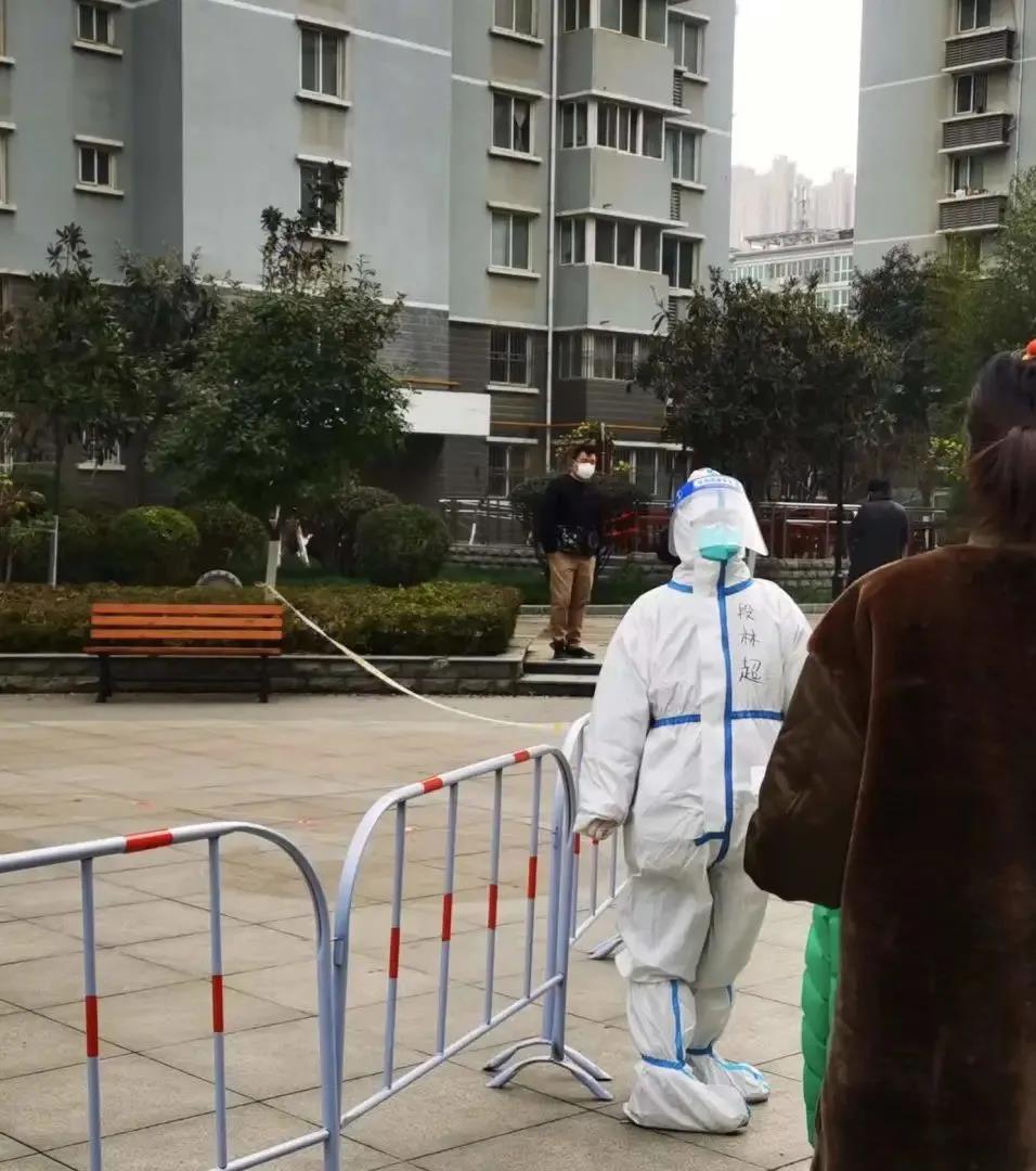 2021年12月27日,我校教师段林超在居住社区作为志愿者参与西安市新一轮核酸检测工作。