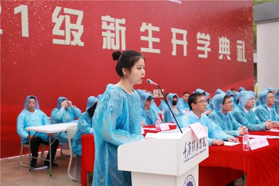 校长张德民教授,党委书记苏开荣教授,教育集团教学总顾问、綦江校区管委会顾问李长萍教授,副校长、綦江校区管委会主任王永周及全体在家校领导,各二级学院和职能部门负责人,校友代表,教师代表,2021级全体新生齐聚綦江校区田径运动场,无畏风雨,共同见证一场盛大庄重的典礼。典礼由重庆移通学院副校长、綦江校区管委会副主任李文豹主持。