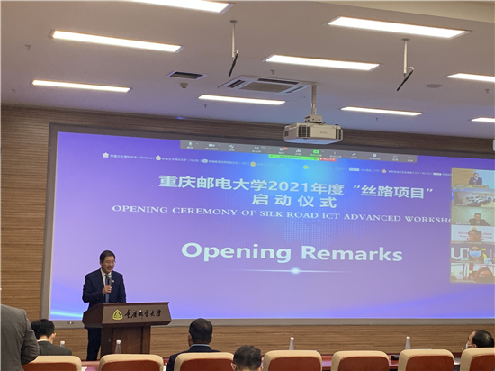 2021年11月15日下午,由重庆市教育委员会主办,重庆邮电大学承办的三个重庆市政府外国留学生市长奖学金丝路项目同时通过“线上”云端直播和“线下”现场授课相结合方式正式开班。来自柬埔寨、斯里兰卡、泰国、俄罗斯、印度尼西亚、阿根廷、缅甸等10个国家的139名政府官员、中资企业当地外籍高管及学术机构学者参加研修学习。柬埔寨通信监管委员会副主任H.E.Kimsann Srun, 斯里兰卡青年与体育部辅秘Mr Saman Waduge,泰国及斯里兰卡合作院校校长等外方嘉宾及国家邮政局、重庆市教育委员会、重庆市外事办、重庆市通信管理局、重庆市邮政管理局、中兴通讯股份有限公司、重庆邮电大学有关领导出席开班启动仪式并致辞。