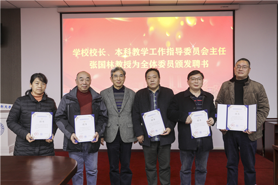 张国林教授为“教指委”成员颁发了聘书。他指出:本科教学工作指导委员会的成立,将助力于推动学校本科层次职业教育试点工作的开展,委员会要发挥好参谋咨询、指导引领的重要作用,进一步提高本科人才培养质量。