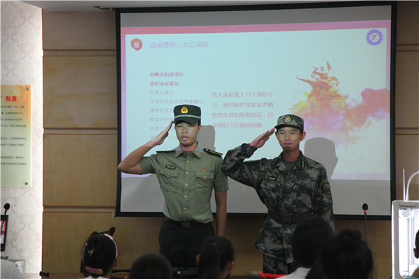 退伍大学生向小朋友们敬礼致意(任泽鑫 摄)