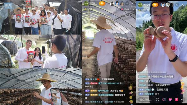 在义和村的李子园、香菇基地,志愿者架起直播设备,开始一轮又一轮的带货直播,随队的指导教师、博士也参与其中。从前期的嫁接、修剪、挂果,到后期的遮阴、采摘、运输,全方位地展示了乡村产业和生态农业的全过程,带货直播初显成效。