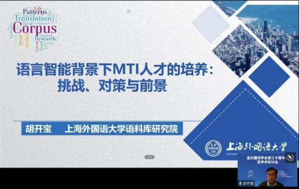 上海外国语大学校长助理、语料库研究院院长胡开宝的报告《语言智能背景下MTI人才的培养:挑战、对策与前景》在概览语言智能的发展历史及其主要领域的基础上,深入分析了语言智能背景下MTI人才培养所面临的挑战以及为应对这些挑战所采取的对策,展望了MTI人才培养的未来发展前景,认为未来MTI教育应在培养方案、课程设置、教学模式和师资队伍建设等方面积极应对语言智能的发展,以构建适应语言智能发展需求的MTI人才培养体系。
