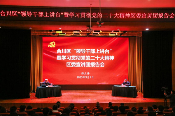 3月1日下午,重庆市合川区“领导干部上讲台”暨学习贯彻党的二十大精神区委宣讲团宣讲报告会在重庆移通学院举行,合川区委宣讲团成员、区委书记郑立伟作宣讲报告。区委办公室、区委组织部、区委宣传部、区教委相关负责人、移通学院师生代表等共计400余人参加。