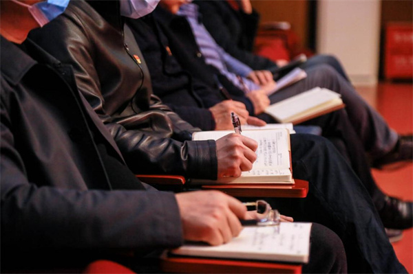 郑立伟强调,要高举中国特色社会主义伟大旗帜,牢记三个“务必”,全面贯彻习近平新时代中国特色社会主义思想,弘扬伟大建党精神,自立自强,守正创新,踔厉奋发,勇毅前行。他从过去五年的工作和新时代十年的伟大变革、历史性胜利、经济政治文化社会建设及生态文明建设、科教人才、全面依法治国等方面,对党的二十大精神进行了全面系统解读。在深入辅导解读的基础上,就进一步学懂弄通党的二十大精神的核心要义提出思考建议,强调要牢记空谈误国、实干兴邦,坚定信心、同心同德,埋头苦干、奋勇前进,为全面建设社会主义现代化国家、全面推进中华民族伟大复兴而团结奋斗。
