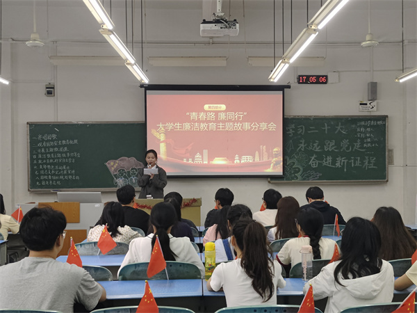 “廉”花盛开校园,“清”润学子心田。各支部开展“讲廉洁故事,树廉洁新风”分享会,将廉洁教育融入团组织生活,融入大学生的日常生活和行为规范。既讲好马克思主义的基本原理,也讲好中国廉洁文化的智慧之理,将“廉洁树人”与“廉德统一”相结合,普及廉洁知识、传播廉洁价值,引导青年大学生树立正确的世界观、人生观和价值观,增强青年是非分辨能力。将廉洁文化内化于心、外化于行,让廉洁文化浸润心田,帮助青年扣好人生的第一粒扣子。