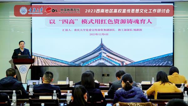 12月6日下午,2023西南地区高校宣传思想文化研讨会在重庆大学召开,来自重庆大学、电子科技大学、西南大学、贵州大学等50余所高校的近百位宣传文化战线的负责人参会,共同深入学习贯彻习近平文化思想,研讨高校校园文化提质增效。
