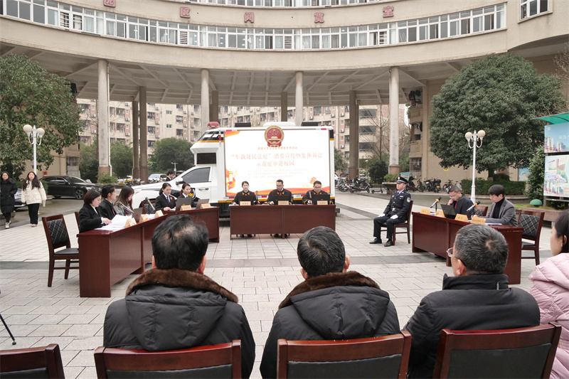 1月5日,“车载便民法庭”开进西南大学,在该校竹园二区文化广场举行了一场别开生面的庭审,众多学生现场观摩学习,零距离接受生动的法治教育。