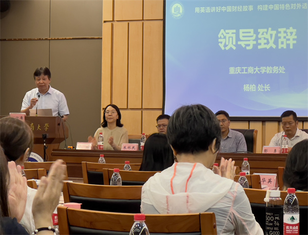 研讨会伊始,重庆工商大学教务处处长、创新创业学院院长杨柏致辞,他表示,此次研讨会召开有助于我校大学英语财经特色的显化和深化,其举行是外语人践行习近平总书记讲好中国故事思想的具体实践,能为构建中国特色哲学社会科学学科体系、学术体系、话语体系等方面做出积极贡献。