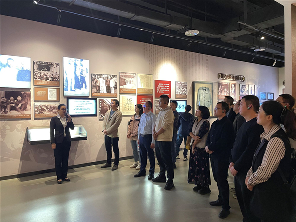 在两江新区协同创新明月湖,学员们参观了抗战大后方内迁主题馆。主题馆内泛黄斑驳的报纸、俊逸飘洒的书信以及陈旧得有些折角的黑白照片,通过现代影音技术配以等比例实物,让人仿佛置身抗日图存、以身殉国的悲壮岁月中。