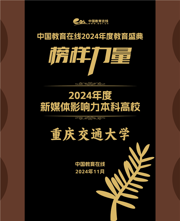 “榜样力量·2024年度教育盛典”优秀案例公布。重庆交通大学凭借在新媒体领域的卓越成就与深远影响力,荣获“2024年度新媒体影响力本科高校”。
