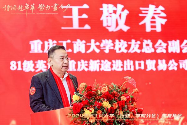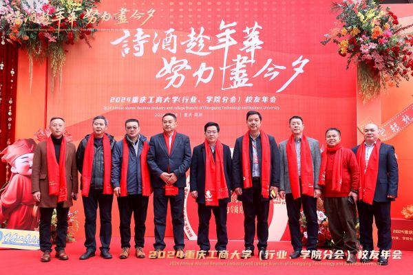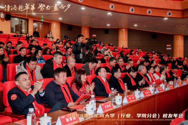祥龙辞岁归玉宇,金蛇起舞启新程。2024年12月28日,重庆工商大学2024年(行业、学院分会)校友年会在南岸校区图书馆剧场成功举行。重庆经开区党工委委员、管委会副主任舒勤科,学校党委书记曾维伦,党委常委、副校长李国军,党委常委、纪委书记、重庆市监委驻学校监察专员张海燕,党委常委、副校长任毅,党委常委、副校长杨柏,学校老领导王崇举应邀出席年会。南岸区科技局、重庆经开区投资集团(产业集团)副总经理、迎龙创新港·大学科技园以及学校相关部门和学院的负责同志,各兄弟院校校友会代表、学校校友总会和各分会的班子成员以及部分师生代表500余人,齐聚南山之麓、翠湖之滨共赴校友年会的“诗酒趁年华,努力尽今夕”之约。
