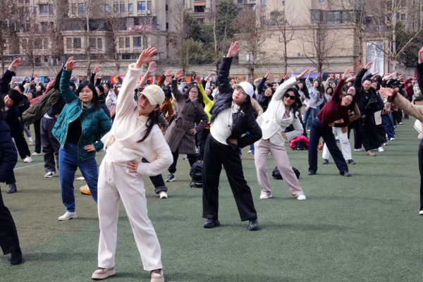 3月7日中午,作为该系列活动之一的“春风化雨润桃李,活力悦动向未来”——春日健康跳活动,在重庆第二师范学院南山田径场举办。党委书记黄晏,党委副书记向艳宏,党委常委、副校长江净帆、吴海霞出席活动,活动由校工会主席陈静主持。全校近500名教职工热情参与,共赴一场健康与活力的春日之约。
