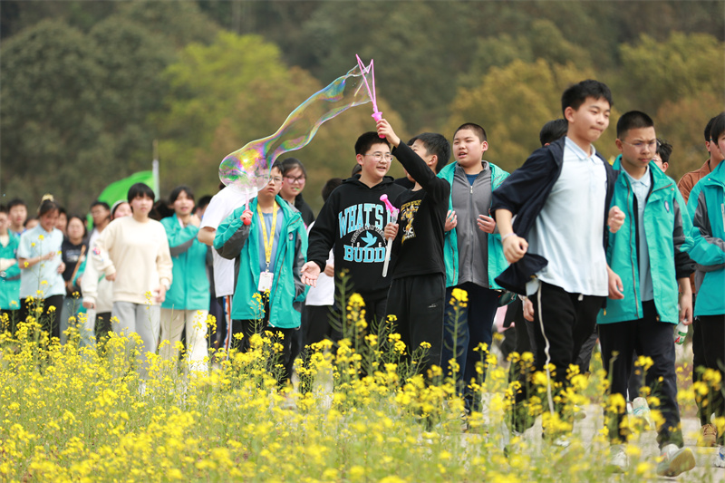 3月19日,西南大学银翔实验中学第九届“穿行春野,少年锦时”活动启程,2000余名学子穿行于春季田野里,进行6公里徒步拉练及野外劳动训练。这既是少年们的环境适应性生存体验活动,更是一堂深刻的大思政课程,同时也是向西南大学附属中学110周年校庆献礼。