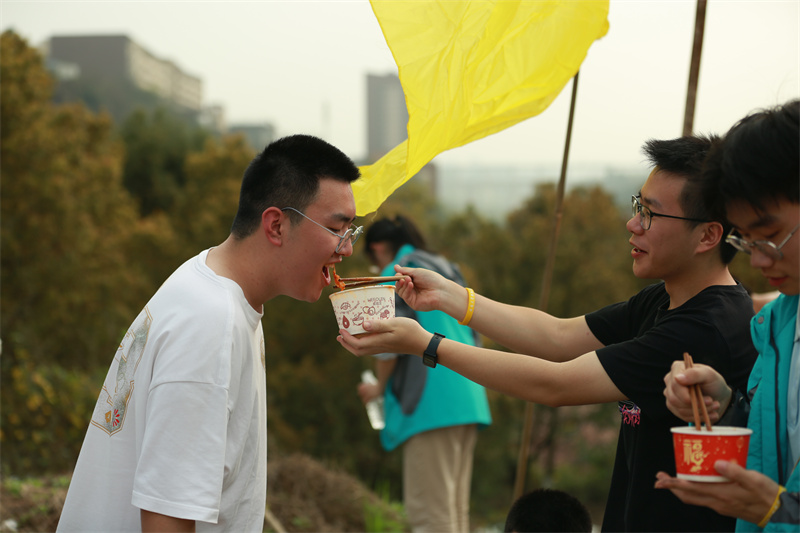 一阵忙碌后,少年们的劳动成果出锅了——热辣滚烫的火锅、热气腾腾的饺子、飘香百米的烧烤和卖相超好的钵钵鸡等等,让人垂涎三尺。大家彼此交换品尝各自的美食,同行的家长和老师也一道分享着劳动的喜悦,欢声笑语在春日的郊外不绝于耳。