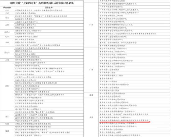 2020年7月底,重庆邮电大学移通学院大数据与软件学院青年志愿者协会在校青年志愿者联合会的指导下,从全国623支团队脱颖而出,成功入选“七彩四点半”志愿服务项目示范团队,获得由中国志愿服务基金会、中国平安人寿保险股份有限公司、日本东京海上公司、团中央青年志愿者行动指导中心、中国青年志愿者协会秘书处给予颁发的2万元支持资金。