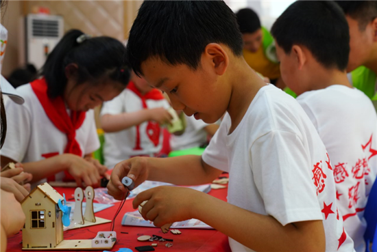 儿童科技DIY活动中,在社工、青年志愿者带领下,孩子们全身贯注、齐心协力制作出了一个个精致的风力发电站科技作品。彭伟杰小朋友说道:“我非常喜欢科技活动,在活动中,我不仅了解了风力发电的原理,而且最重要的是学会了坚持,组装期间虽然遇到了些困难,但志愿者姐姐一直鼓励我别灰心,最后我坚持把它组装好了,希望在生活中我也能勇敢面对困难。”科技制作活动不但激发孩子们的好奇心和探索能力,还锻炼了他们的想象力、专注力。