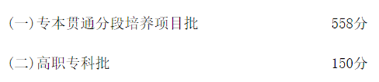 备注:中职类所含应用型本科和高职专科对口招生、中高等职业教育贯通培养项目转段招生录取最低控制分数线,将在相应专业(职业)技能测试完成后划定并公布。