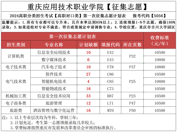 重庆应用技术职业学院征集志愿计划表
