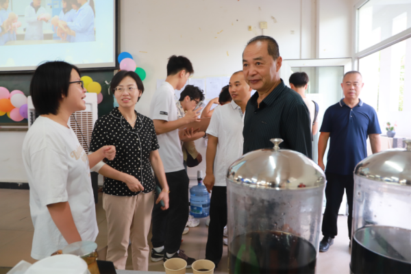 学校健康产业学院旅游专业的学长学姐们利用专业技能,调制了冰镇酸梅汤、果茶、冰萃咖啡等饮品,既为新生和家长送去“凉爽”,又向他们展示了专业技能。