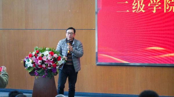 校长王顺克代表学院对新设立的二级学院表示祝贺。阐述了学校专业群建设和二级学院改革的目标、路径和工作方法。他强调,学校新设立6个二级学院,确定12个专业发展大类方向,开启了学校专业建设的新征程。各二级学院要紧紧围绕学校专业发展方向,进一步修订“十五五”专业发展规划,厘清产教融合、人才培养等方面发展思路,加快建立完善管理体系和运行机制,凝练队伍,提升能力,推动教育教学质量全面提升,为学校高质量高速度内涵特色发展注入新活力。