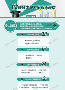 《考研大讲堂》栏目是金宝搏188入口 策划的系列图解内容,旨在为考生及业内人认识用图解的方式了解考研政策、考研常识。 包含研究生考试方式、学位类型及分支、中国学位授予程序、研究生种类、如何锁定考研目标等指导性内容,并同期在“掌上考研”等移动平台大力推广,助力考研之路。[详情]