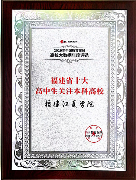 福建江夏学院获评“2019年福建省十大高中生关注本科高校”