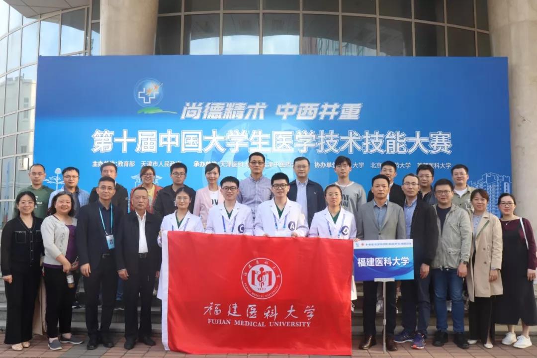 5月15日至16日,第十届中国大学生医学技术技能大赛总决赛在天津市举行。由福建医科大学校党委副书记王诗忠、福建医科大学附属第一医院党委书记林章雅和福建医科大学第一临床医学院副院长柴大军带队,福建医科大学第一临床医学院组队,2016级临床医学专业张立炜、罗英花、杨巧、林希特4名选手组成的代表队,一路过关斩将,获大赛总决赛银奖!