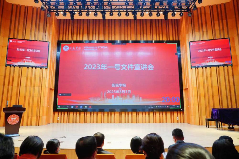 新起点应有新作为。3月3日,学校在行政楼音乐厅召开2023 年“一号文件”宣讲会。4位“一号文件”执笔者代表,带着“创建‘学有所值’的高素质应用型人才培养体系”的最新思考和行动方案,在会上作了精彩分享。全体校领导和全校教职工以“线下+线下”方式全员参会。