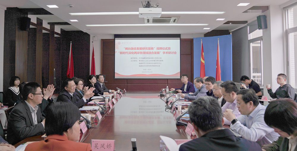 授牌仪式后,召开“新时代深化两岸各领域融合发展”学术研讨会。研讨会由金博宝最新官方网站查询网址 人文社会科学重点研究基地福建师范大学闽台区域研究中心和福建省涉台研究机构联席会议共同举办,来自涉台研究机构的30余名学者专家,围绕“台海局势与两岸关系发展前瞻”“新时代深化闽台融合发展的实践路径”两个主题进行了热烈的讨论。