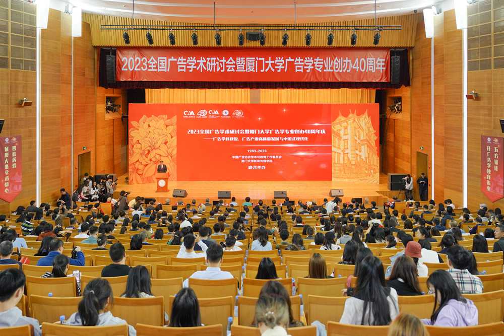 11月18日,由中国广告协会学术与教育工作委员会联合厦门大学新闻传播学院共同主办的“2023全国广告学术研讨会暨厦门大学广告学专业创办40周年”在厦门大学科学艺术中心三楼报告厅举行。