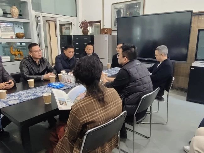 在中央美术学院,丁峰一行同中央美术学院党委副书记王晓琳座谈交流。王晓琳介绍了中央美术学院的学科建设以及近年来所承接的重大国家项目及未来发展战略。丁峰介绍我校基本情况及产教融合、校企合作等方面经验。随后,双方就学科建设、教育教学模式创新、高校服务经济社会发展等交换意见。