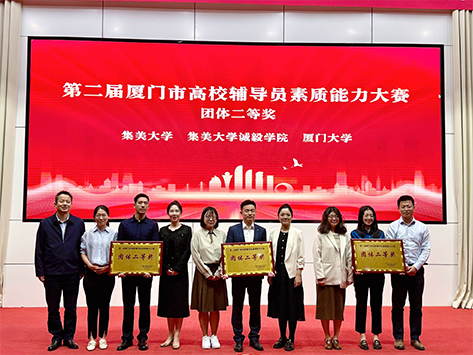 12月6日,由厦门市教育工委主办,厦门市高校辅导员协会承办的第二届厦门市高校辅导员素质能力大赛决赛在厦门理工学院举行。共有17所高校的51名辅导员选手进入全市决赛。我院由数学与数字科学系毛海婷、商船系徐弘、智能制造与机械工程系王婷婷组成的代表队以全市第4名的总成绩获团体二等奖,王婷婷获“谈心谈话”单项奖。