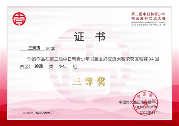 今年是中日邦交正常化50周年以及中韩建交30周年,三国政府特组织第二届中日韩青少年书画友好交流大赛。本次比赛的中国赛区由中国文联(正部级)和中央外文局(副部级)联合主办(该大赛入选金博宝最新官方网站查询网址