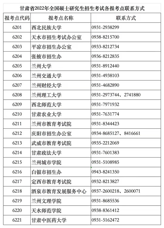 一、在甘肃省报名参加2022年全国硕士研究生招生考试尚未返回甘肃省的考生,请尽快到达报考点所在地,并立即与报考点联系登记。
