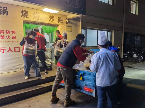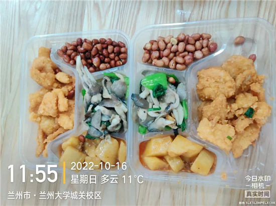 17:00开始,这些越来越规范、越来越丰富的晚餐,由后勤工作人员和驻楼干部逐份配送到每位同学手中。