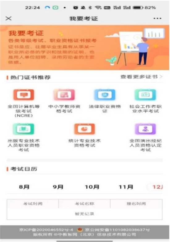 支持各类等级考试、职业资格证书报考,提供全面的考证资讯及信息,包括各类考试的考试时间和报名时间,为学生参加考证提供便利。