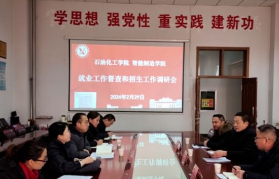 为贯彻落实全省2024届高校毕业生就业工作第四次视频调度会精神,根据学校工作安排,2月29日至3月1日,党委常委、副院长马悦宁带领招生就业处相关负责人深入14个二级学院开展就业工作督查和招生工作调研。